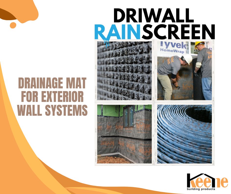 Driwall Rainscreen is a drainage mat for exterior wall. Driwall Rainscreen 013-1 18 Driwall Rainscreen 020-1 14 Driwall Rainscreen 10mm.